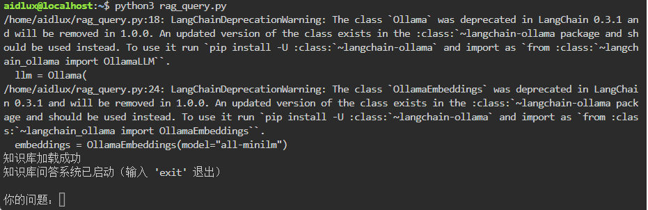 print("知识库问答系统已启动(输入 'exit' 退出)")