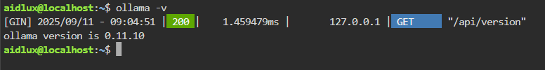 安装完毕可以查看ollama版本进行验证,出现版本号之后就可以使用ollama
