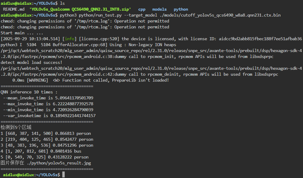python3 python/run_test.py --target_model ./models/cutoff_yolov5s_qcs6490_w8a8.qnn231.ctx.bin --imgs ./python/bus.jpg --invoke_nums 10