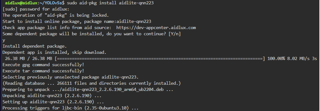 sudo aid-pkg install aidlite-{QNN VERSION}