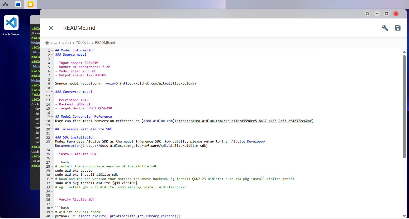 打开readme文件进行查看,可见模型信息、工具链下载等步骤