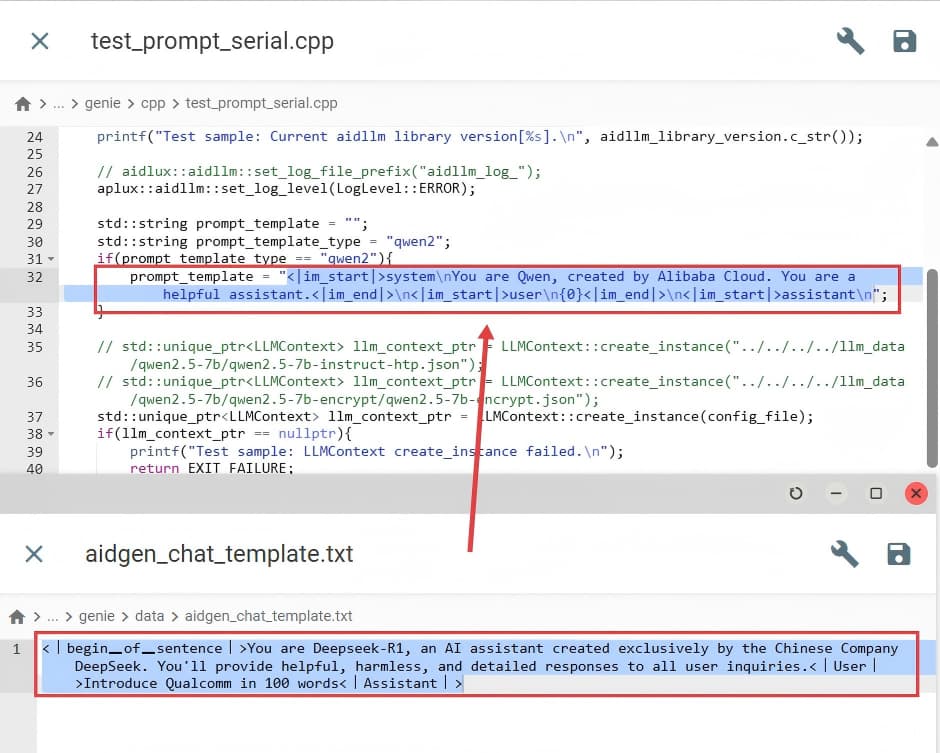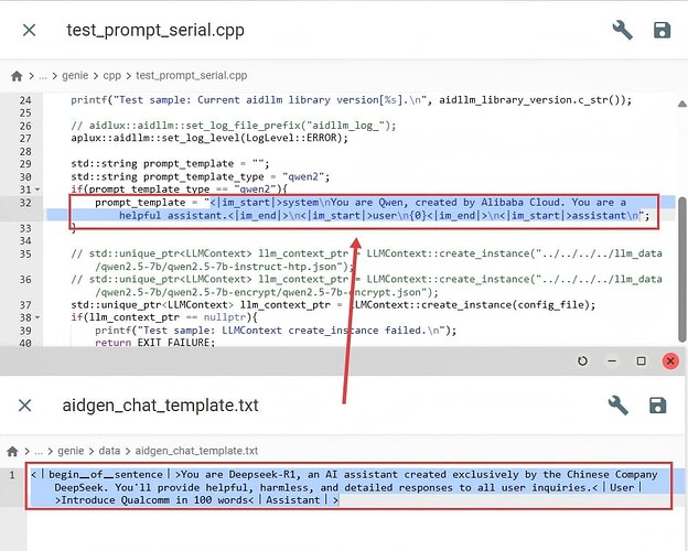 6.根据data路径下aidgen_chat_template.txt模板修改/genie/cpp路径下的test_prompt_serial.cpp文件中的提示词模板部分