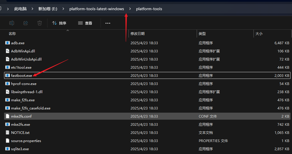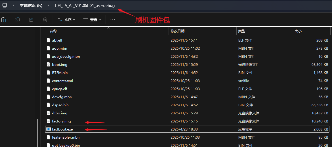 将fastboot.exe 拷贝到解压后的固件刷机包路径下