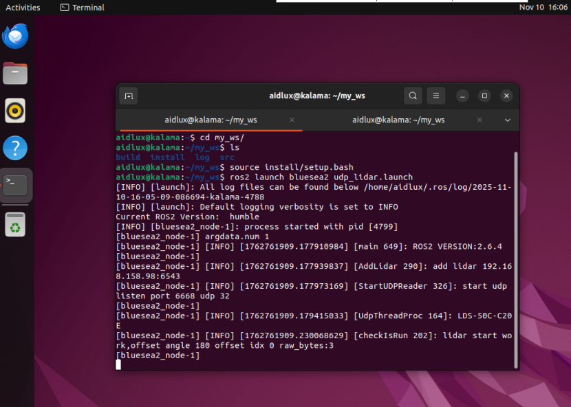 ros2 launch bluesea2 udp_lidar.launch #节点服务启动