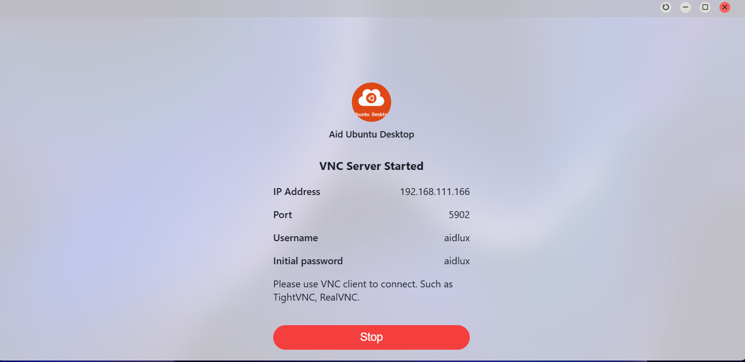 启动应用服务后,可通过VNC连接到机器人操作系统桌面。