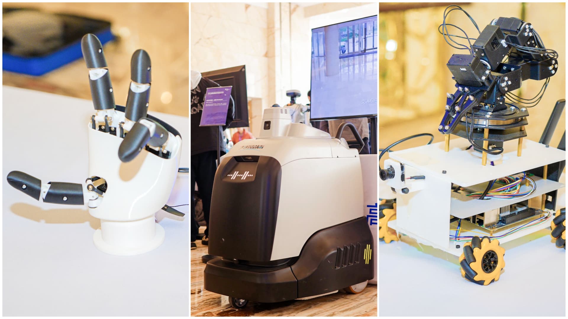 作品展现出明确的实用化导向,覆盖从家庭陪伴到行业服务等广泛领域。例如,智能陪伴机器人、辅助机器人以及智能家庭健康安全守护应用聚焦居家陪伴、情感交互与老人看护;石材养护机器人瞄准商业空间的自动化维护痛点;高精度农业机器人致力于提升耕种管收的效率与精度;而双轮足机器人、灵巧手等作品则在运动控制技术上实现了关键突破。