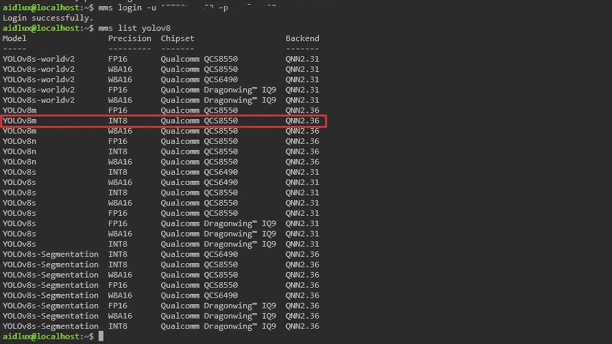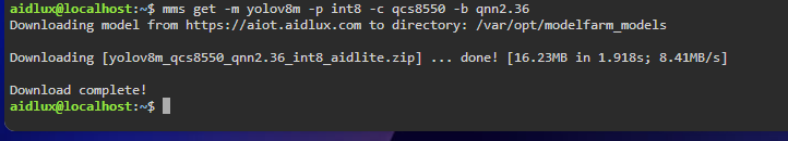 mms get -m yolov8m -p int8 -c qcs8550 -b qnn2.36