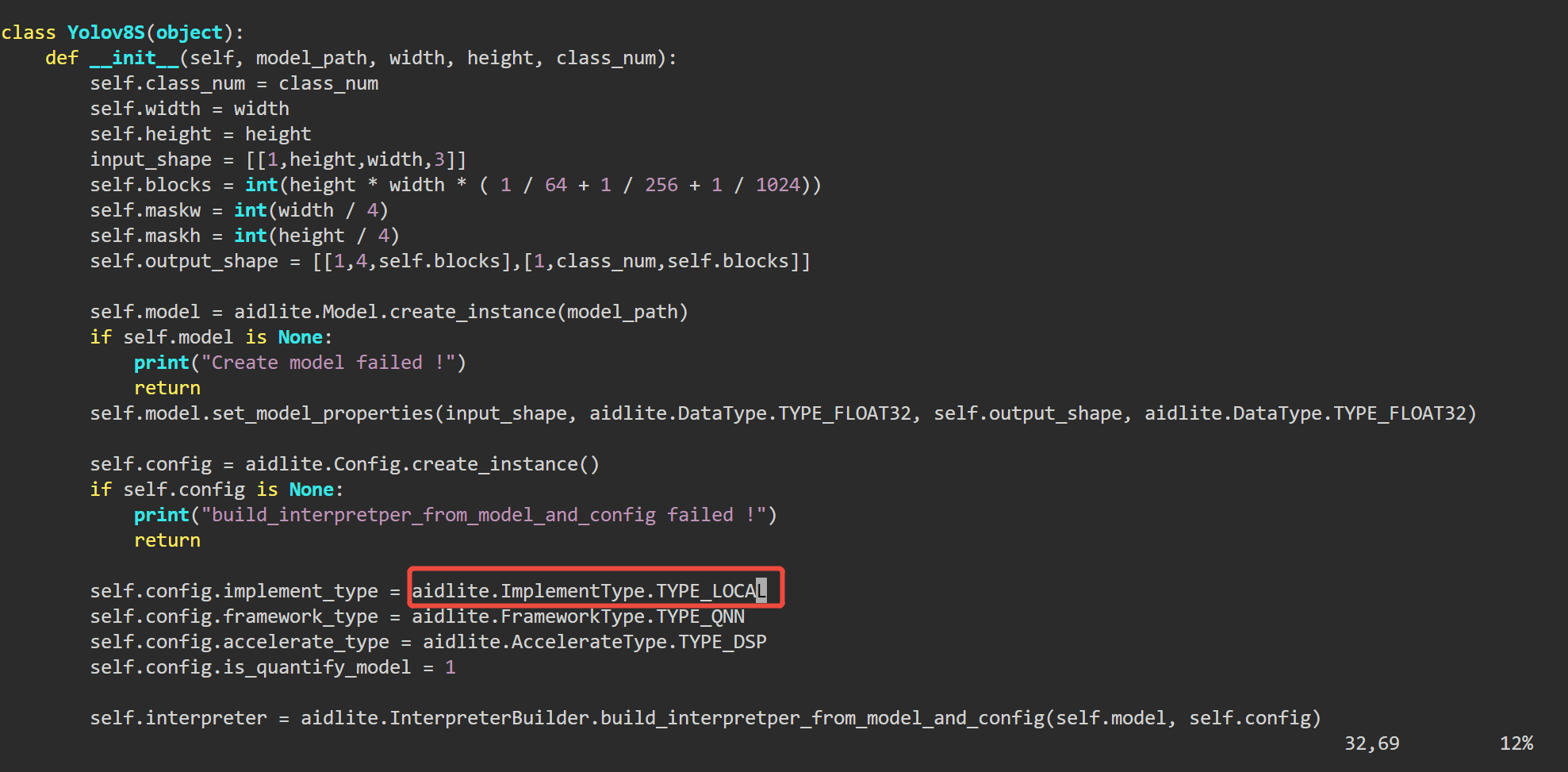 编辑yolov8s.py 文件的相关配置信息,修改aidlite的调用类型: